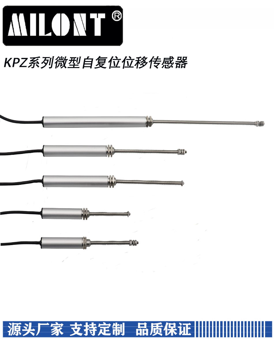 KPZ系列微型自復(fù)位式位移傳感器,量程0-100mm可選,輸出0-100%給定輸入電壓(隨位移變化而變化)。傳感器為電位計(jì)原理,另外可以外置信號(hào)變送模塊,將信號(hào)轉(zhuǎn)換為標(biāo)準(zhǔn)的0-5V,0-10V,4-20m模擬信號(hào)或者RS485數(shù)字信號(hào)。